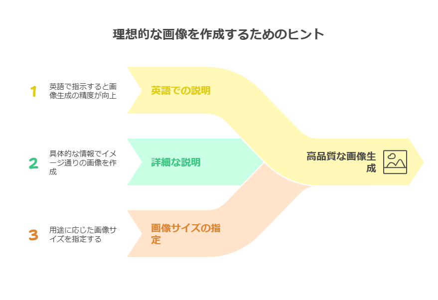 ChatGPTでより理想的な画像を作るには、以下のポイントを意識しましょう。