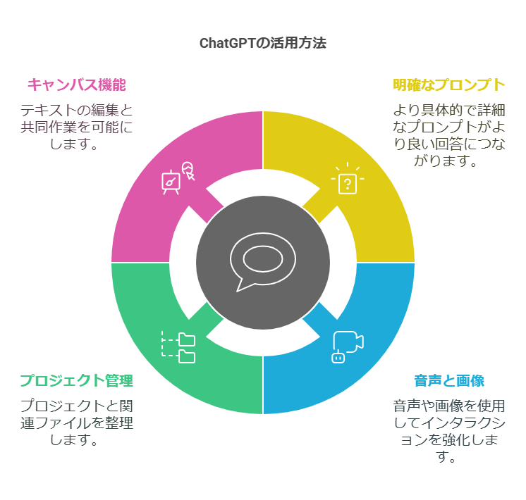 ChatGPTをうまく活用するには、以下のポイントを意識するとよいでしょう。