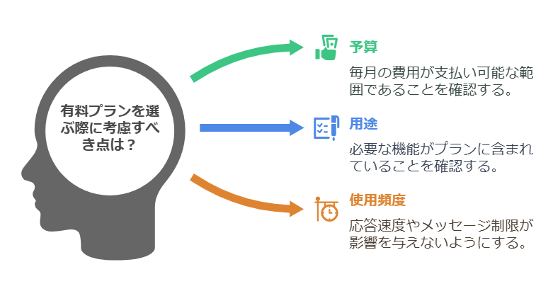 有料プランを選ぶ際には、以下のポイントを考慮するとよいでしょう。
